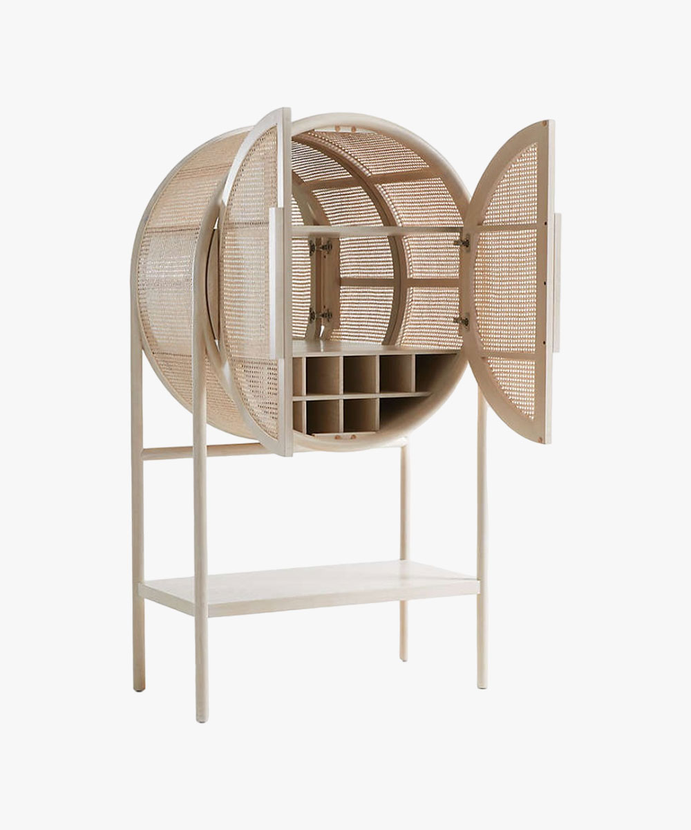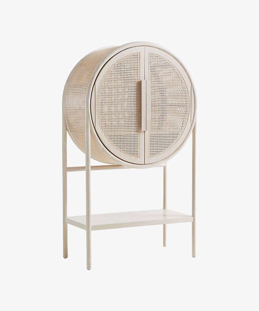 New West Natural Cane Storage Bar Cabinet
